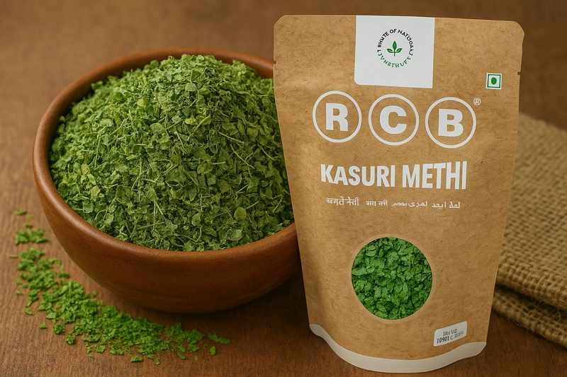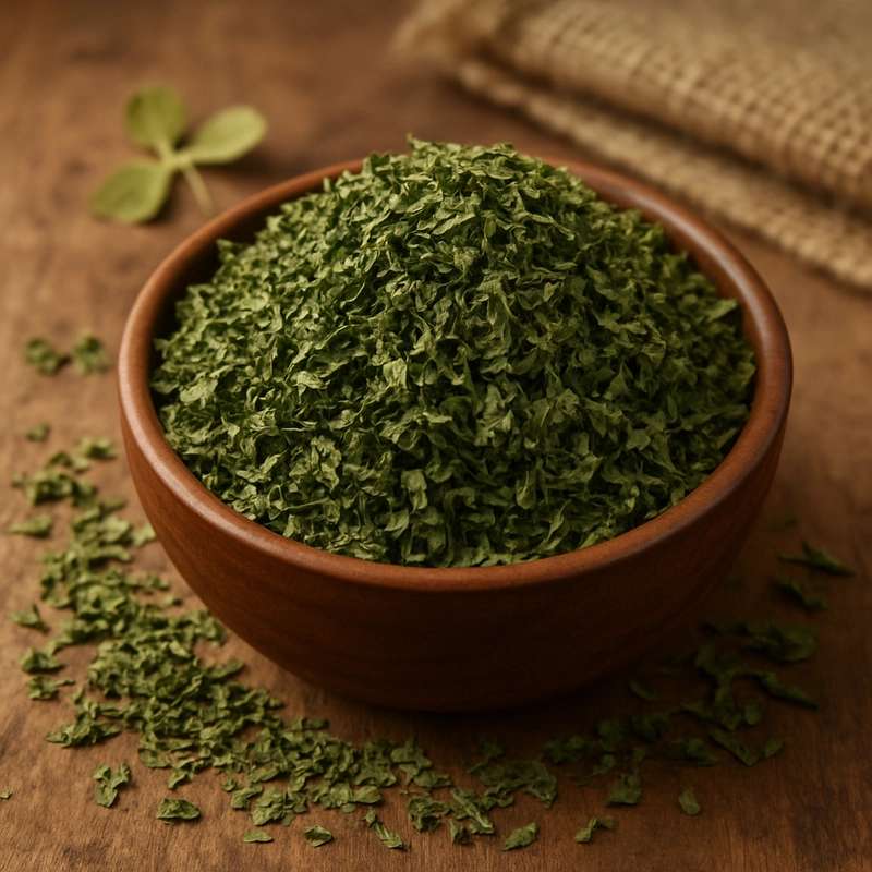Folhas de feno-grego secas de Kasoori Methi, sabor autêntico, tempero culinário indiano do Oriente Médio