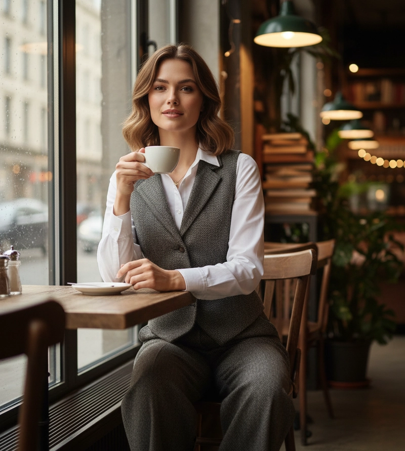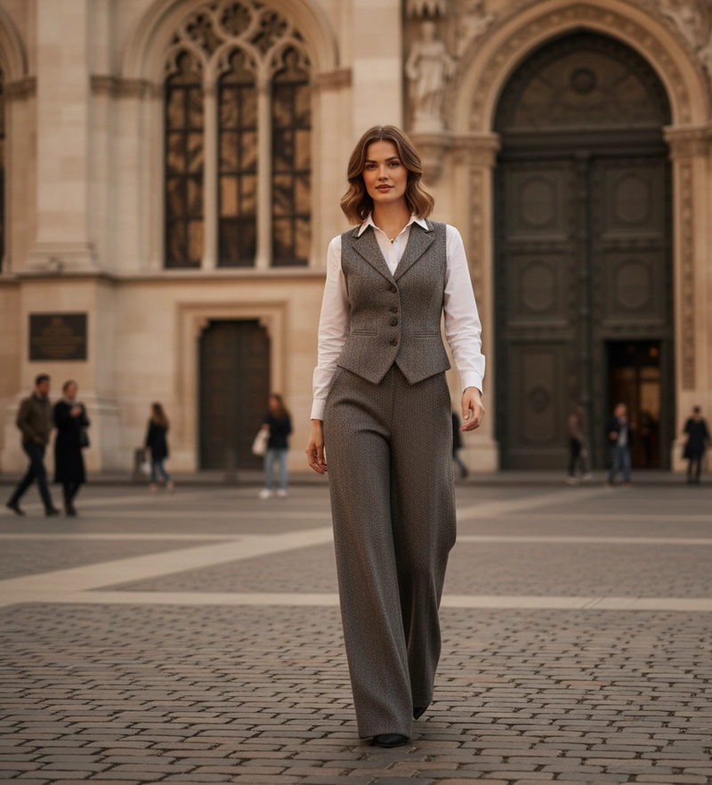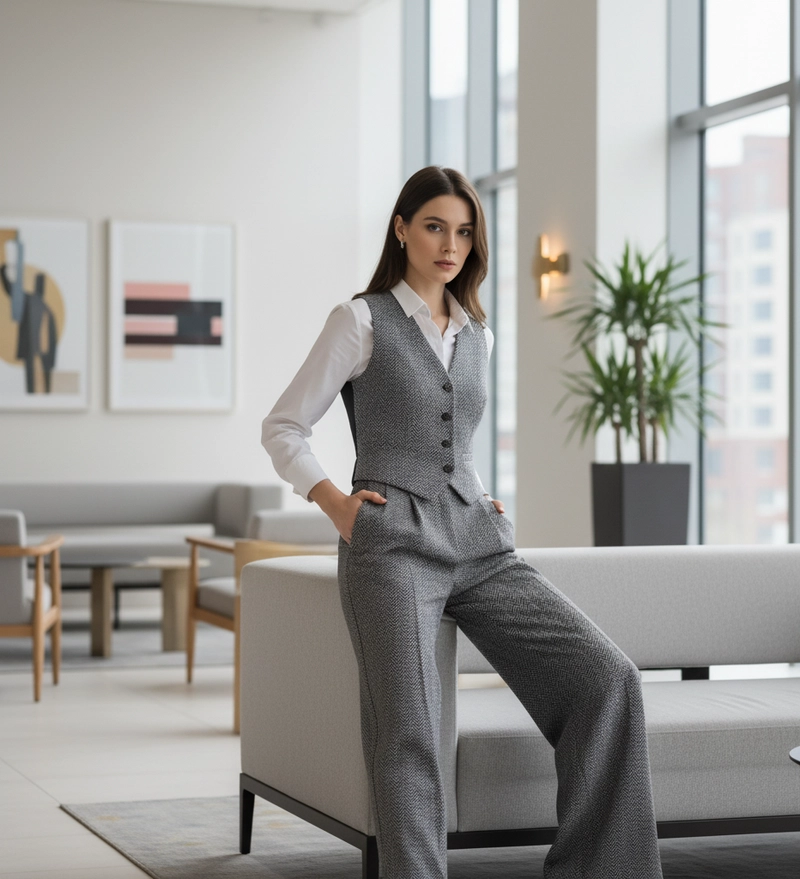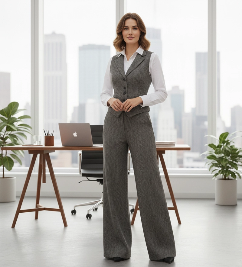 Conjunto de calças e coletes formais femininos personalizados (uso profissional, OEM/ODM)