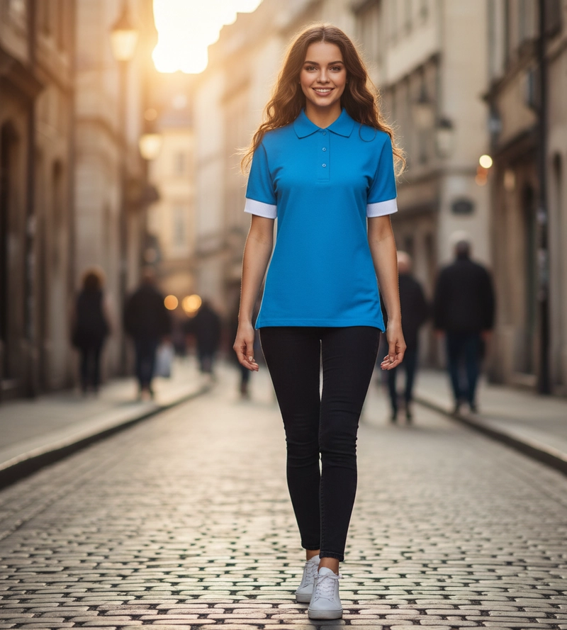 Camisa polo feminina justa em piqué (cor e acabamento personalizados, roupa corporativa OEM)