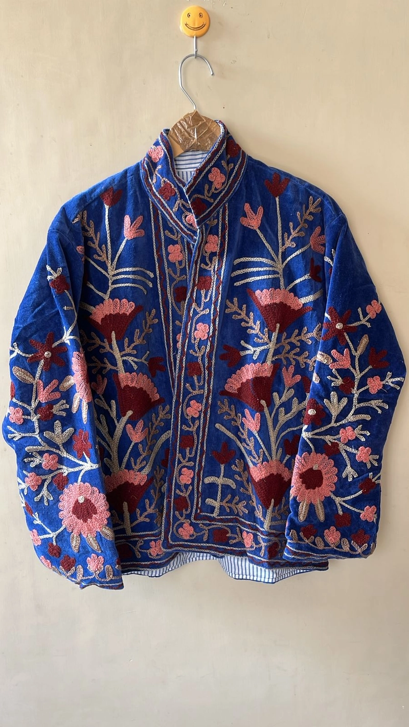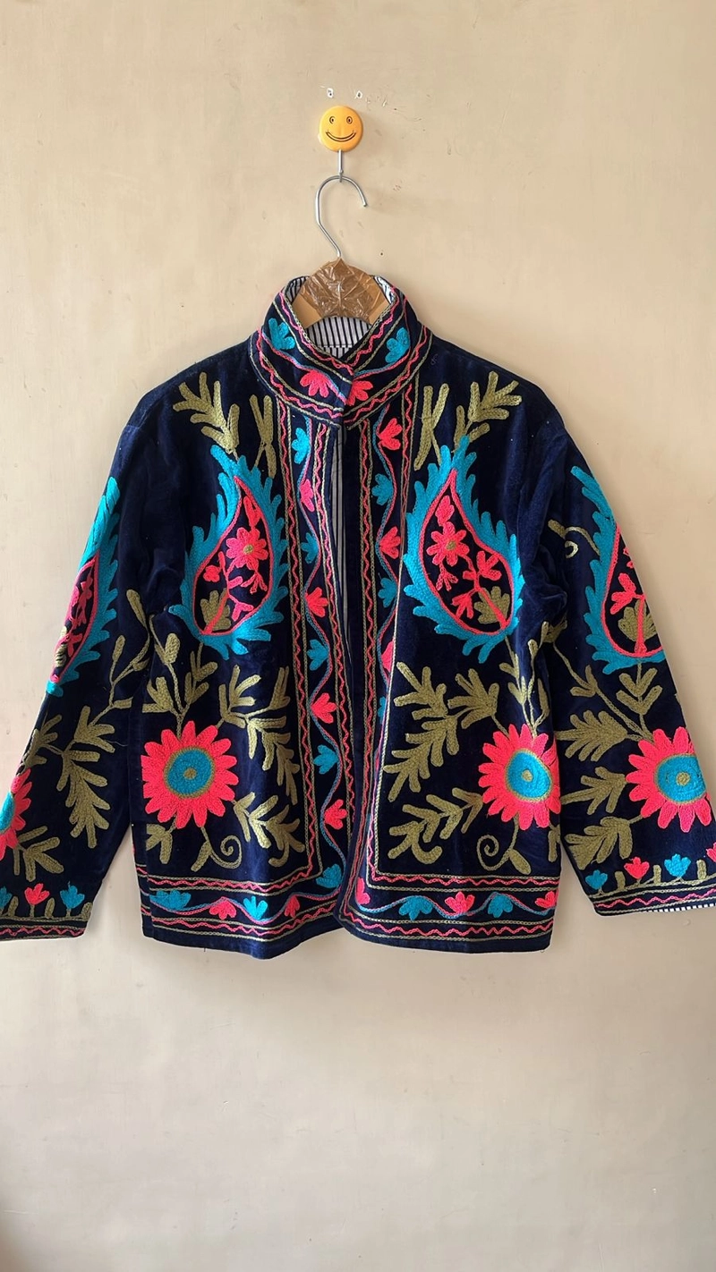 Jaqueta de veludo bordada feita à mão Botanical Motifs Artisan Crafted Edição Limitada