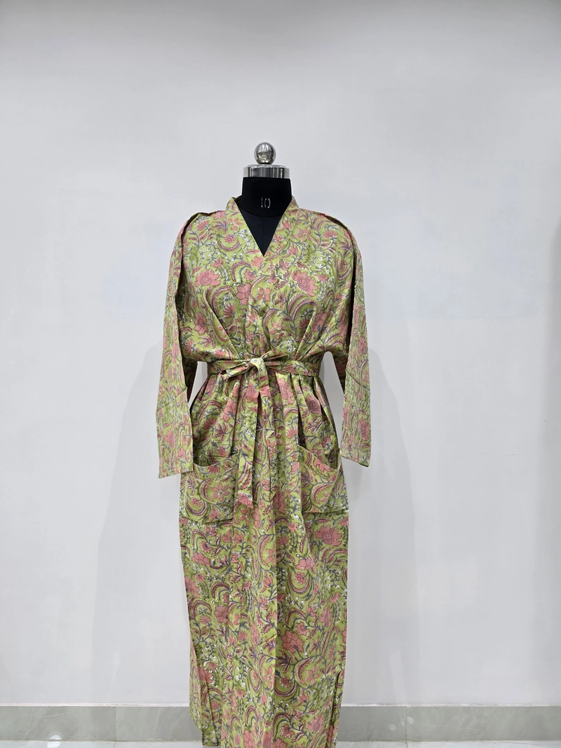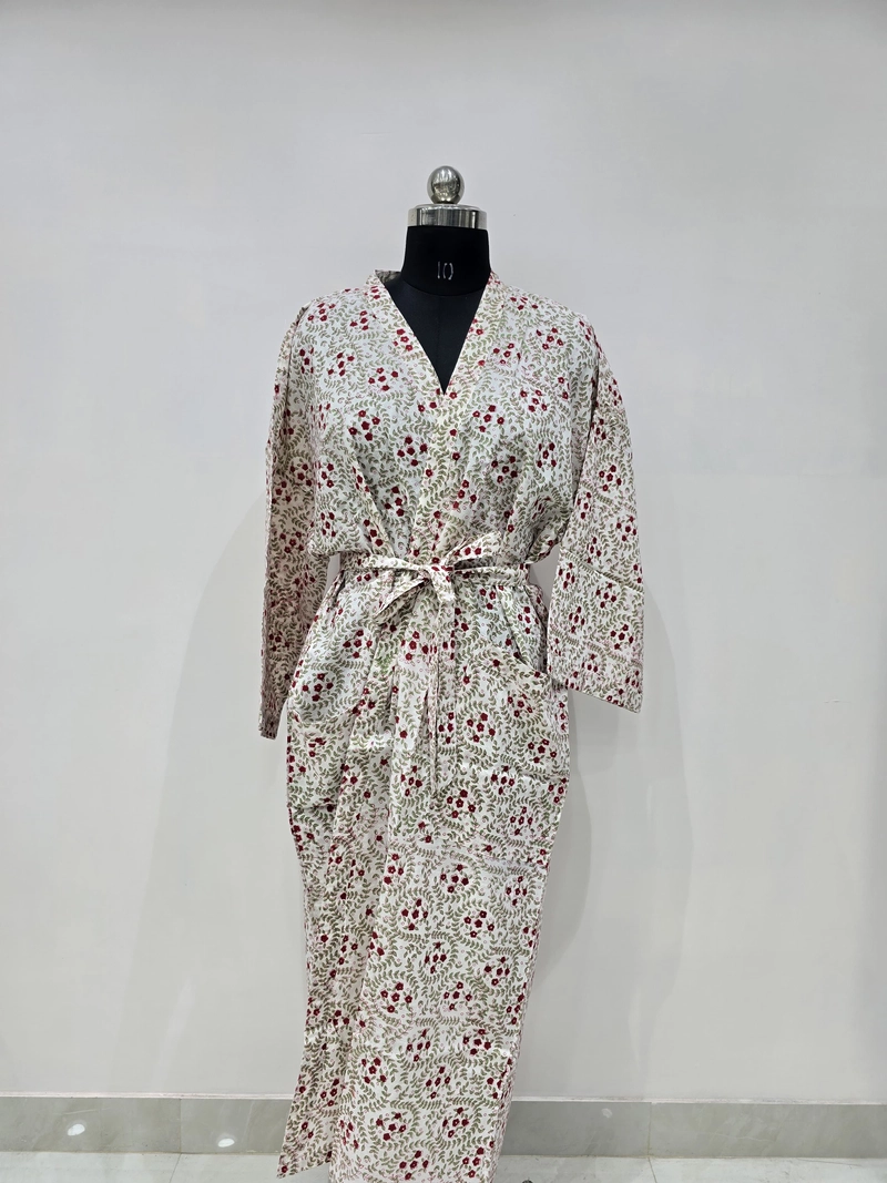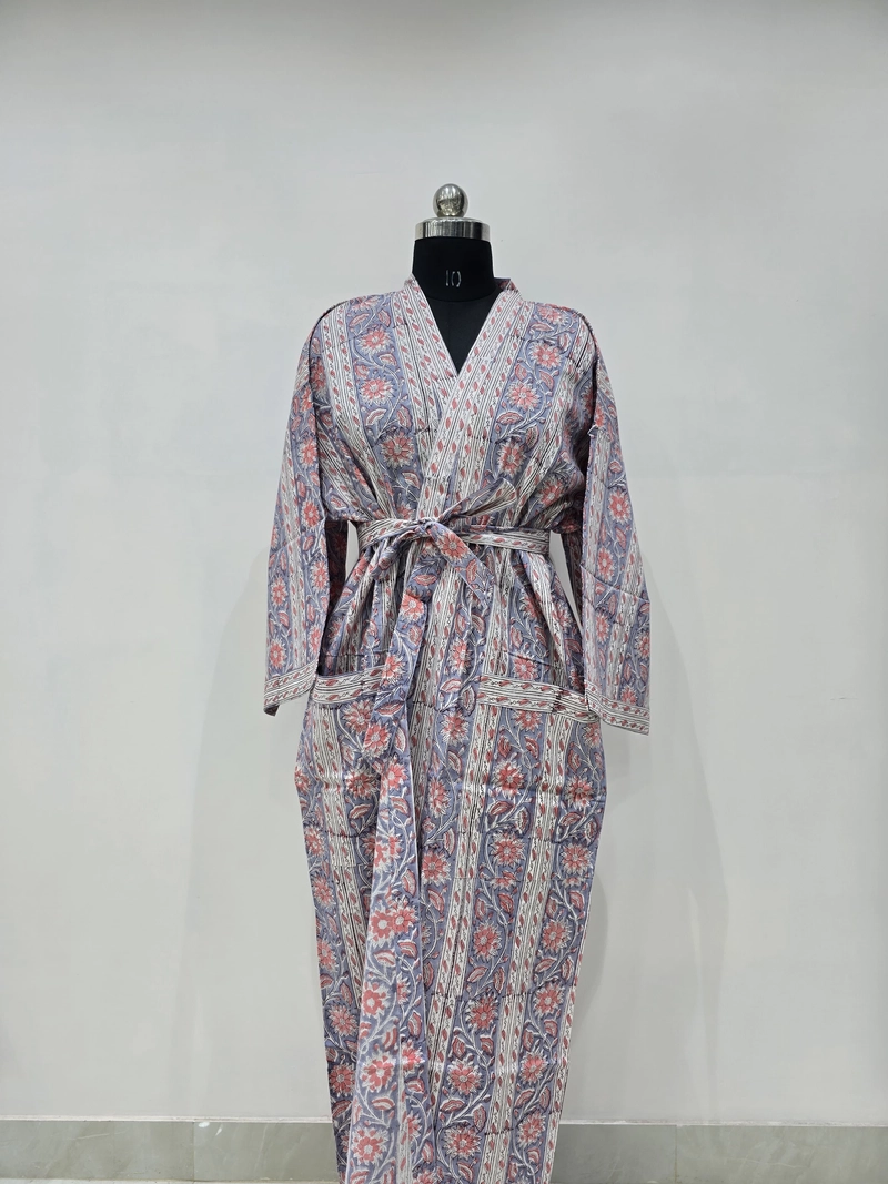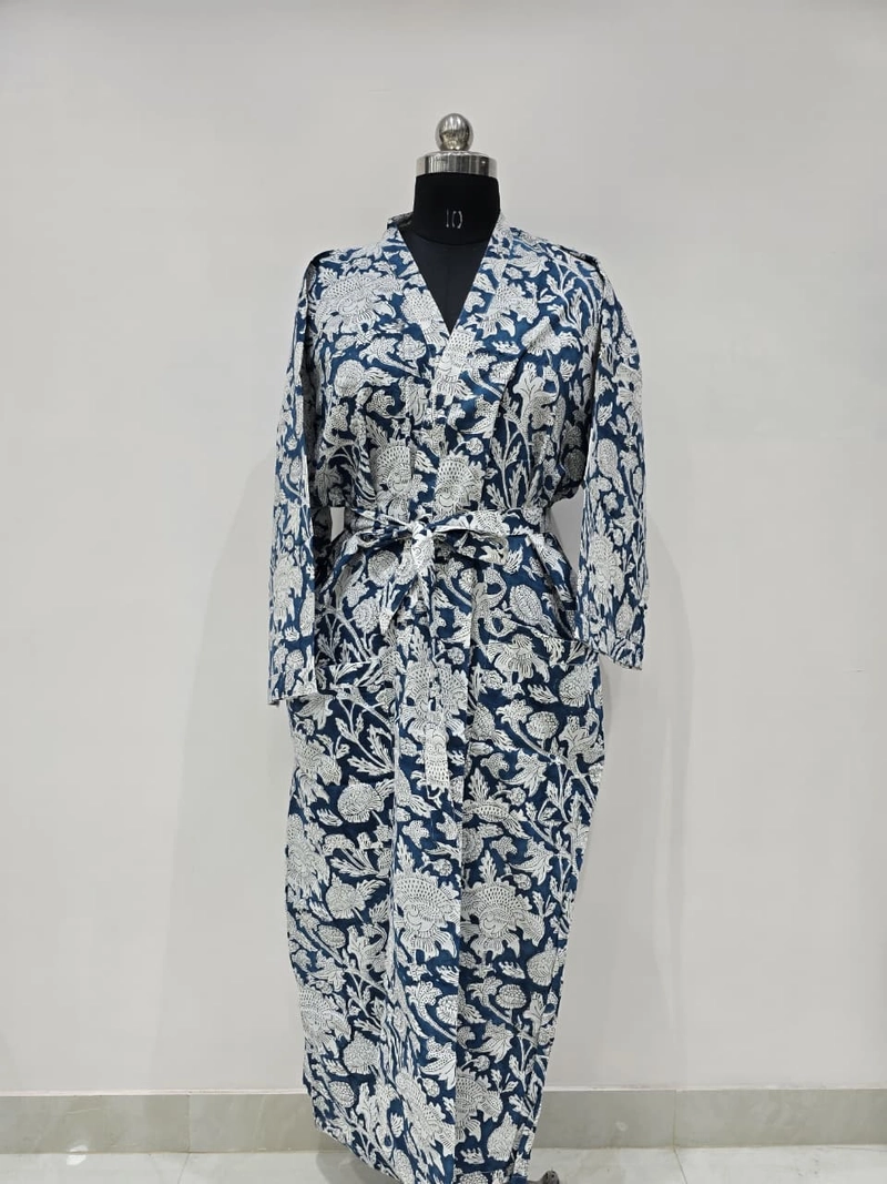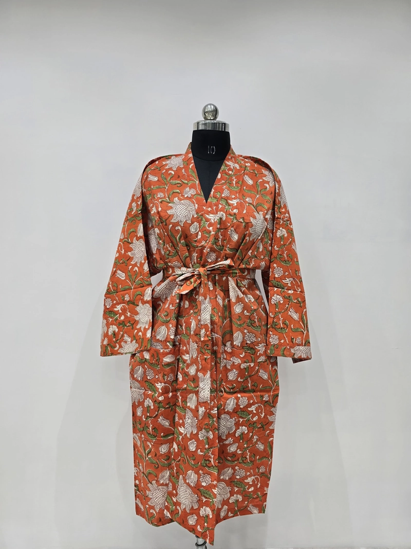 Roupão quimono de algodão estampado à mão — motivo floral | Venda por atacado