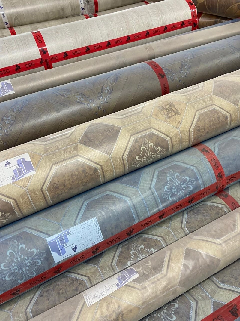 Fornecimento direto da fábrica de pisos de linóleo de PVC, 1,5 a 4 m de largura, 2,7 mm de espessura, texturas modernas, tons naturais
