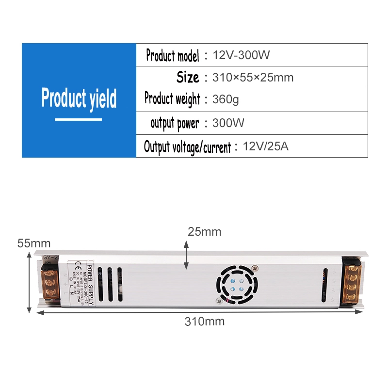 Transformador de driver de LED ultrafino MFW TS-300 de fornecimento em massa | AC100-265V a DC12V 6A | Fonte de alimentação de comutação de alumínio para a indústria de iluminação de espelhos
