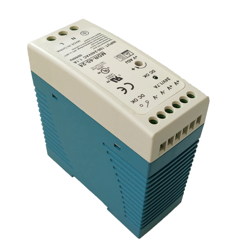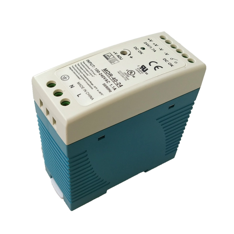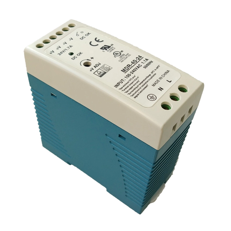 Fonte de alimentação de trilho DIN fino de saída única de 40W 24V AC-DC | Disponível em OEM/ODM | Para aplicações industriais MDR-40-24