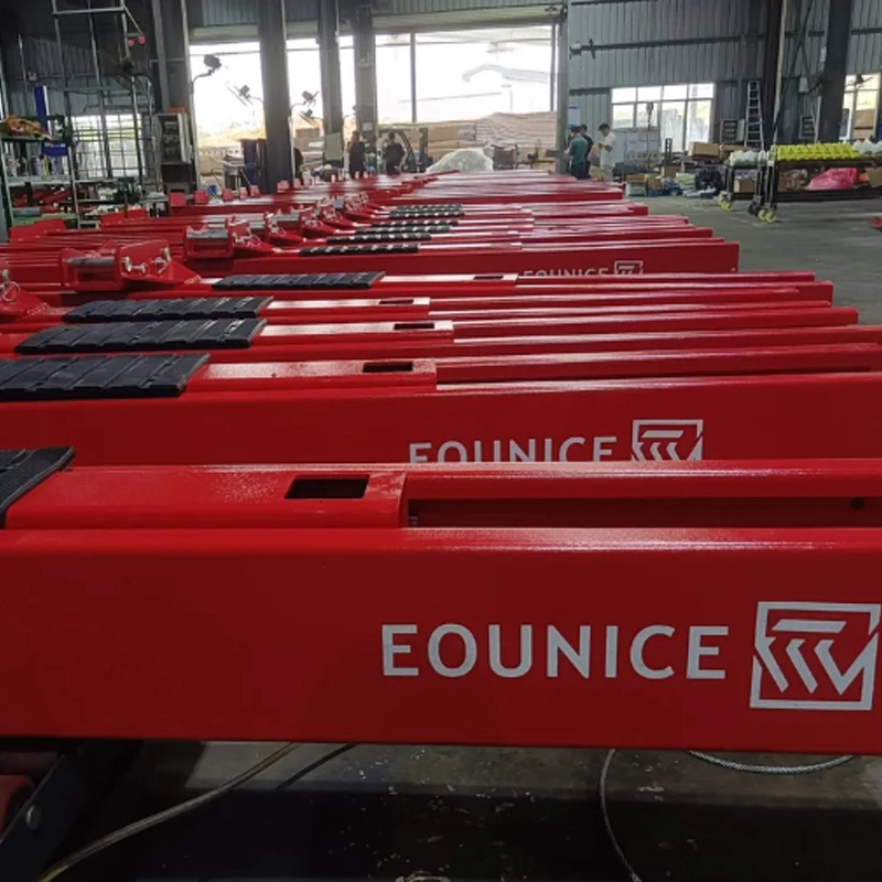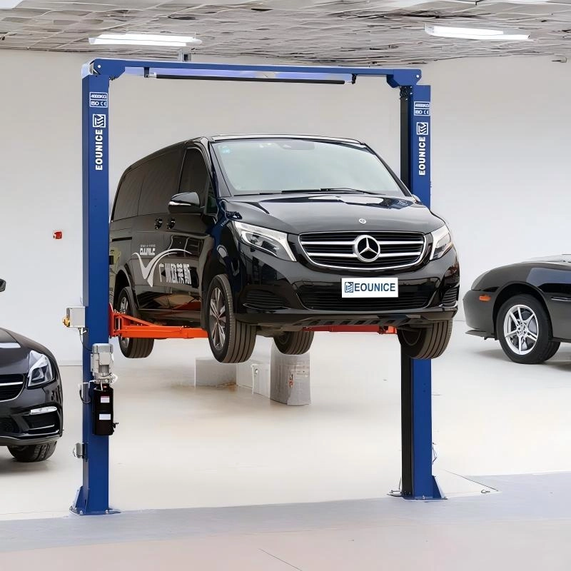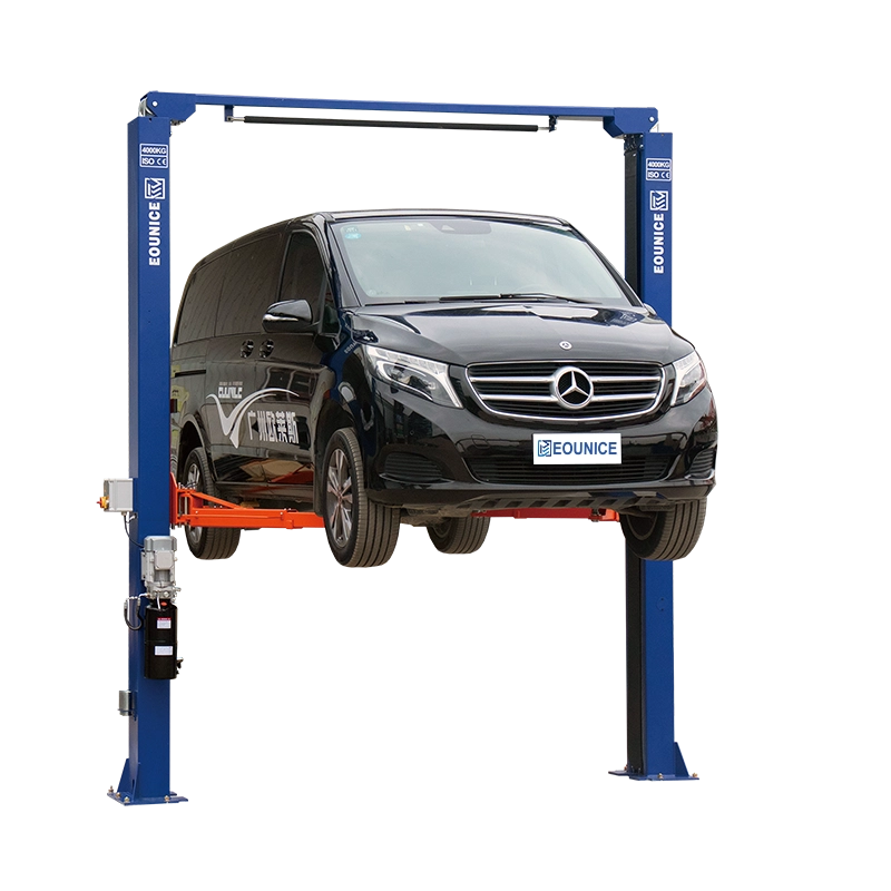 Elevador de dois postes de piso transparente de 4,5 toneladas ON-7214DT-45 4.500 KG (10.000 libras) de liberação manual de um lado e cilindros duplos de acionamento direto.