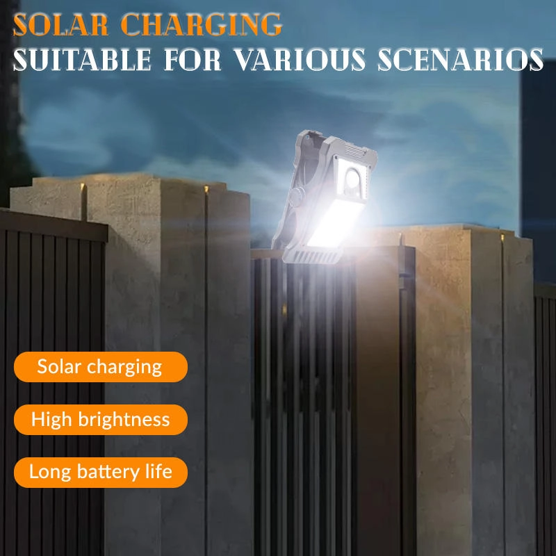 Tipo de clipe de luz de jardim Lâmpadas solares DC5.5V Sensor de movimento rodoviário externo Iluminação impermeável USB Luz quente/luz fria recarregável