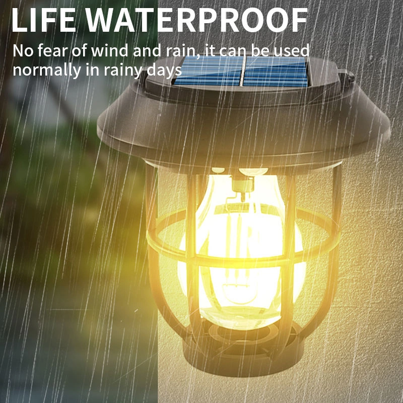 Lâmpada de acampamento solar multifuncional Lanterna portátil de 3 modos Luzes de jardim e gramado Luminárias de chão externas impermeáveis Luminária de parede de pátio